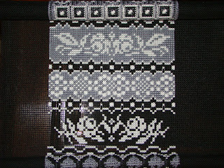 Last week, I didn't know what to stitch on, so I pulled a WIP, and worked on that for a little bit. I pulled out the Antique Lace canvas project. I didn't do too much, I did the filling stitches on another band before I put it down. I didn't take it apart to take a full picture, just the band I was working on. To see a picture of the whole thing click here to go to my post when I worked on it last.