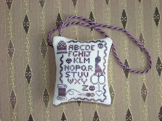 Its a freebie by Marika Belfiori ( http://www.marikabel.splinder.com/ )stitched over 1 on some mystery 28ct fabric with Ollalieberry Glorianna silk thread (one of my favourite colours by them). There was more to the gift, but I didn't take a picture before giving it to her...